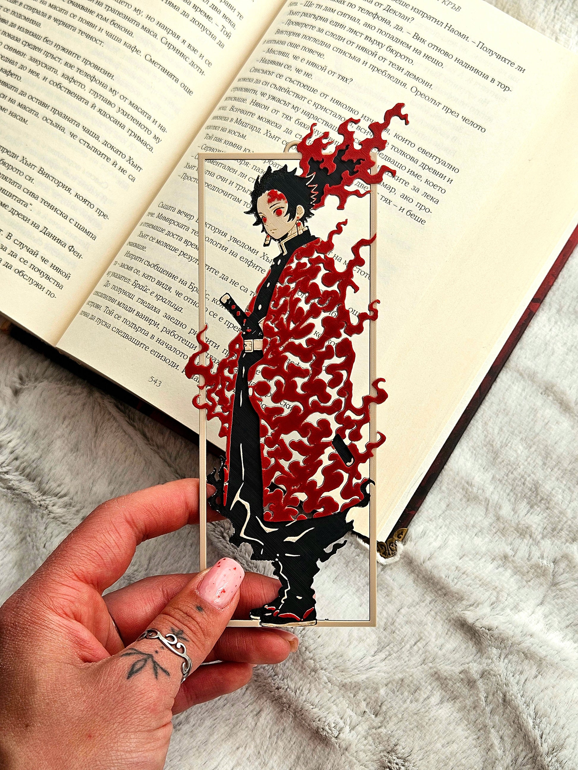 3D Tanjiro Demon Slayer Layered Bookmark | Black and Red Flame Design, 15 x 5 cm, Collectible Anime Accessory